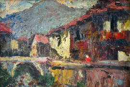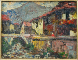 Casale in Valmalena, olio su tavola, cm 15x19,5, firmato G.Cinotti a tergo, entro cornice.