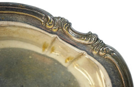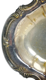 Centrotavola in metallo argentato, XX secolo, cm 4x32x24,5