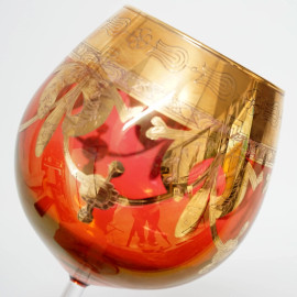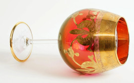 Coppia di calici in vetro rosso rubino con decori dorati, cm h 20, XX secolo.