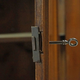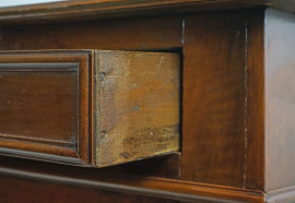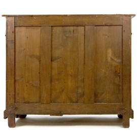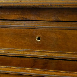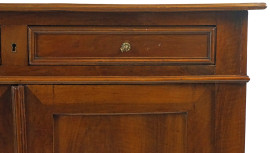 Credenza in noce stile Luigi Filippo, inizi XX secolo, fronte a due cassetti e due sportelli, piedi a mensola, cm h 96,5x116x38,5, (difetti)