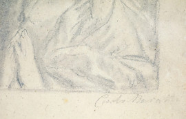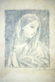 Da Carlo Maratta (1625-1713), Madonna orante, disegno a matita su carta, cm 23x14,5, XX secolo, entro cornice.