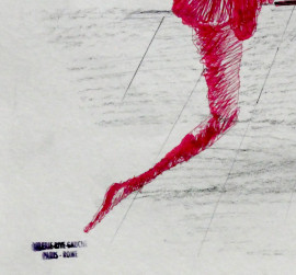 Disegno a tecnica mista, scena dal Don Chisciotte de la Mancha, firmato datato, cm 24,5x33. Provenienza Galerie Rive-Gauche, Parigi-Roma.