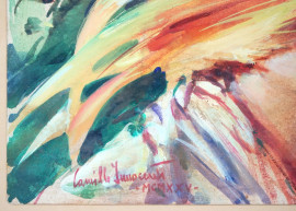 Donna con cappello, acquarello su carta, cm 21,5x20, firmato Camillo Innocenti, entro cornice.