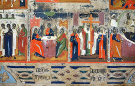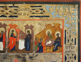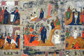 Icona raffigurante le Tredici Feste -Scene della Vita di Maria e di Gesù, tempera su tavola, cm 36x31,5, inizi XX secolo, (difetti).