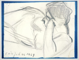 Nudo di donna assorta, stampa ritoccata a mano, cm 12x16, entro cornice, (macchie).