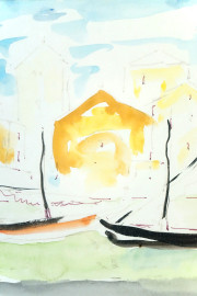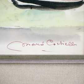 Laguna, tecnica mista su carta, cm 20x25, firmato Mario Cortiello, entro cornice.