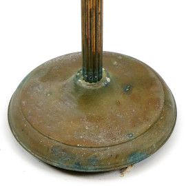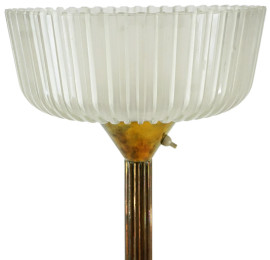 Lampada da terra in metallo dorato, paralume in vetro, cm h 187, XX secolo, (difetti).