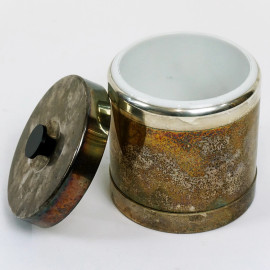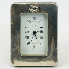 Lotto composto da un orologio con finiture in argento, uno svuotatasche a forma di ciabatta ed un portaghiaccio in metallo argentato, misure max cm 30x12, XX secolo, (difetti, meccanismo da revisionare).