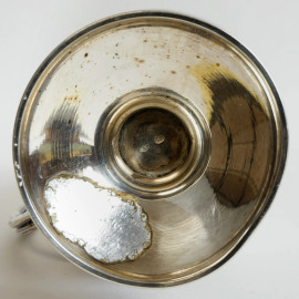 Lotto composto da un versatoio ed un vasetto in argento, XX secolo, peso gr. 432, (difetti).