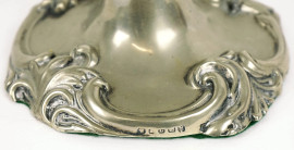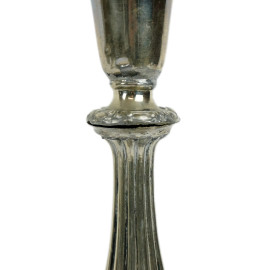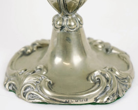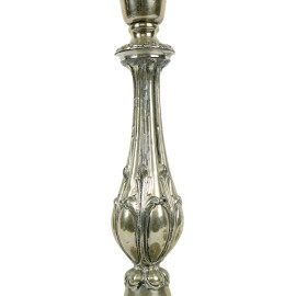 Lotto composto da una coppia di candelieri ed una bugia in metallo argentato, alt. max cm 25,5, XX secolo, (segni del tempo)