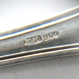 Lotto di 5 cucchiaini manico lungo in argento 800, peso gr. 103