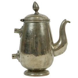 Lotto di cinque teiere in materiali diversi, alt. max cm 20, XX secolo, (difetti, mancante un manico).
