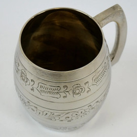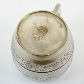 Lotto di tre boccali in metallo, alt. max cm 13, XX secolo.