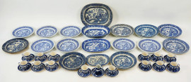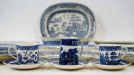 Composto da 1 zuppiera, 1 legumiera, 21 vassoi, 37 piatti fondi e piani, 14 tazzine, 15 piattini, 1 zuccheriera,1 lattiera, 25 coppette, (pz. tot. 116).