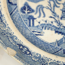 Lotto di vari oggetti in porcellana bianco e blu a decoro di cineserie, misure max cm 48x41, marchi ed epoche diverse, (difetti).