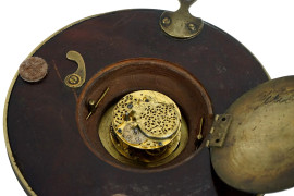 Mastro orologiaio Thomas Windmills (1686-1740), orologio da parete, Londra, cassa in legno e metallo dorato, quadrante a numeri romani, cm 17,5x15,5, (meccanismo da revisionare).