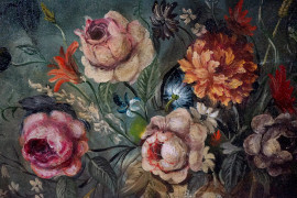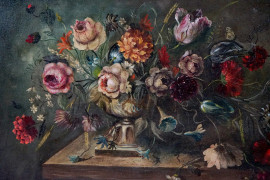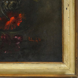 Natura morta- vaso con fiori, olio su tela, cm 59,5x99, firmato, entro cornice