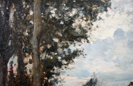 Paesaggio con alberi, olio su tavola, cm 28,5x36,5, firmato Pallonera, entro cornice.