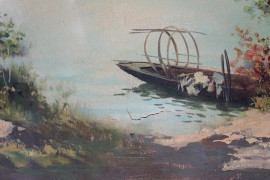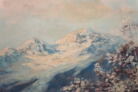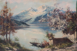 Paesaggio montano, olio su tela, cm 70x100, firmato, entro cornice