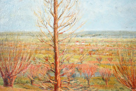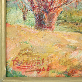 Paesaggio veronese, olio su cartone, cm 29,5x39,5, firmato Trentini, entro cornice, (difetti).