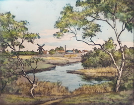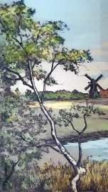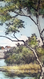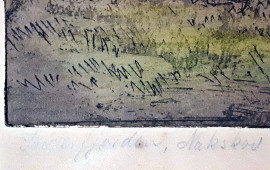 Peder Moller (XIX sec.) Fiordi di Nakskov, acquaforte con acquarellatura a mano originale, cm 53x63, firmato e titolato a matita dell'autore.