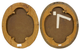 Pittore del XIX secolo, coppia di ritratti, olio su tela ad assetto ovale, cm 59x48,5, (difetti)