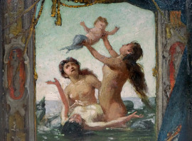 Pittore del XIX secolo, Nereidi, olio su tavoletta, cm28x17,7, (restauro)