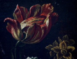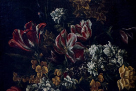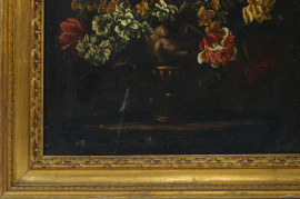Pittore fiammingo del XVII secolo, Vaso con fiori, olio su tela, cm 65x49, entro cornice, (difetti)