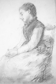 Ragazza seduta, matita su carta, cm 34,5x25,5, firmata Tito Vessi, entro cornice.