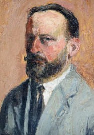 Ritratto d'uomo, olio su tavola, cm 23x15, firmato, (lievi difetti).