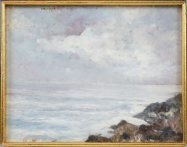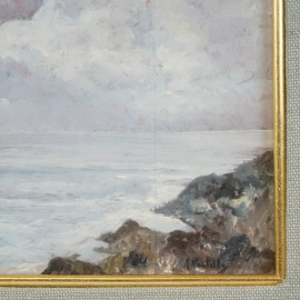 Scogli, olio su tavola, cm 13x17, firmato, entro cornice.