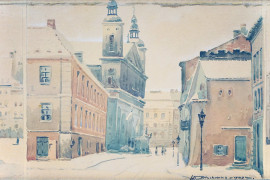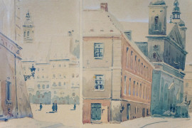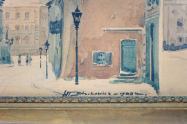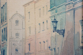 Scorci di Varsavia, acquarello su carta, cm 23x61, firmato, entro cornice.