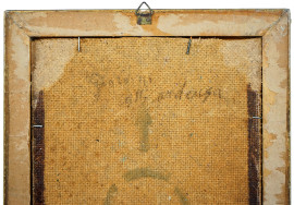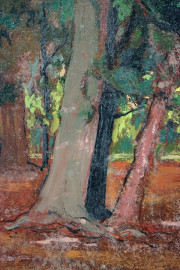 Scorcio boschivo, olio su masonite, cm 24,5x18,5, XX secolo, entro cornice.