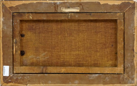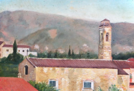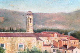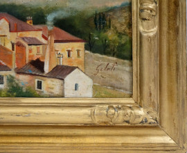 Scorcio di paese toscano, olio su tela, cm 33x61, firmato, entro cornice.