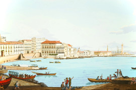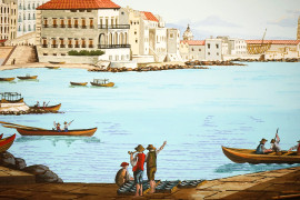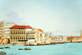 Scorcio sul Casino Reale del Chiatamone, gouache su carta, cm 25x35, XX secolo, entro cornice.