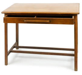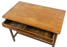 Scrittoio in noce, XX secolo, ad un cassetto, gambe dritte unite da traverse, cm h 75,5x97x55,5, (segni del tempo).