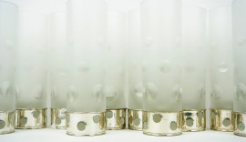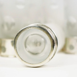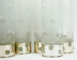 Servizio di bicchieri per 12 persone in vetro satinato con basi in argento, cm h 17,5