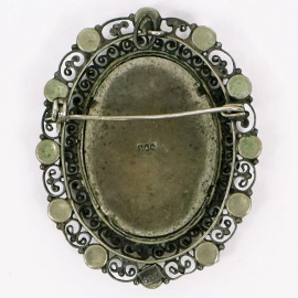 Spilla-pendente in argento con miniatura raffigurante volto della Vergine, cm h 5, inizi XX secolo