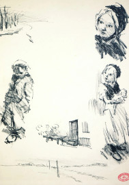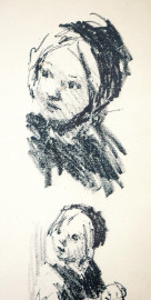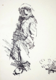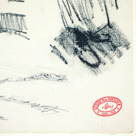 Studio di figure, carboncino su carta, cm 32x25, timbro Atelier Théo Van Elsen in basso a destra, entro cornice.