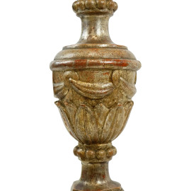 Torciera montata a lampada in legno intagliato e argentato, cm h 182, prima metà XX secolo, (difetti)