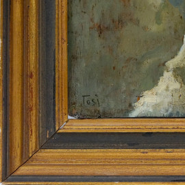 Vaso di fiori, olio su compensato, cm 76x54,5, firmato Tosi, entro cornice, (difetti).