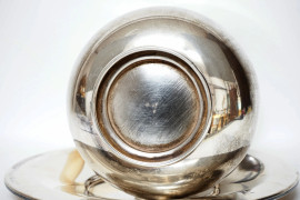Versatoio in argento con piatto, cm h 20,5 diam 22, gr. 715