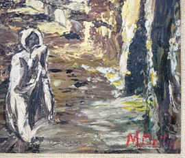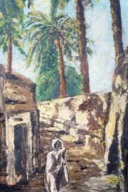 Viale con figura orientale, olio su tavoletta, cm 31,5x19, firmato, entro cornice