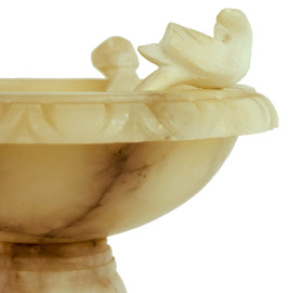 Alzatina in alabastro con volatili, cm h 12, XX secolo, (difetti).