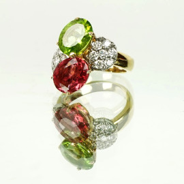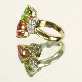 Anello in oro giallo 18 KT con tormaline multicolore e brillanti, peso gr. 11,6