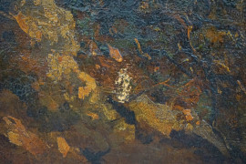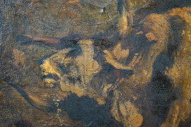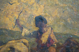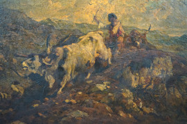 Paesaggio con pastore e buoi, olio su tela, cm 63x98,5, entro cornice.