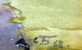 Paesaggio con chiesa ortodossa e figure, acquarello su carta, cm 48x65, datato '65, entro cornice.