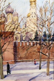 Veduta di Cremlino, acquarello su carta, cm 42x31, entro cornice.