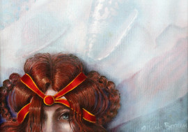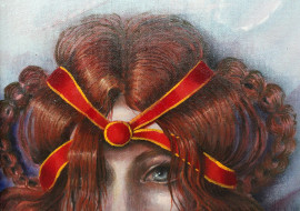 Donna Venezia, olio su tela, cm. 40x40, firmato fronte/retro, entro cornice.