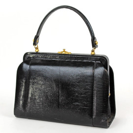 Borsa nera in pelle, cm 17x24x9,5, (difetti).
